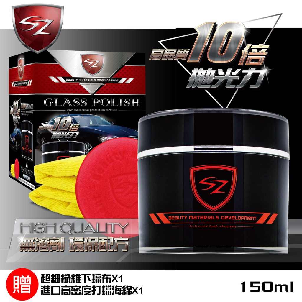 【SZ 玻璃油膜去除膏 150ml】附專用布+打蠟海綿