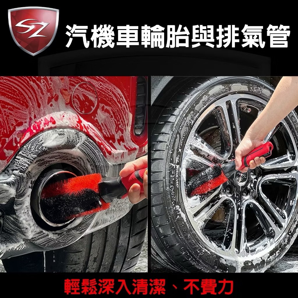 2️⃣ 以旋轉或直刷方式清潔鋼圈、輪胎縫隙或排氣管內部。