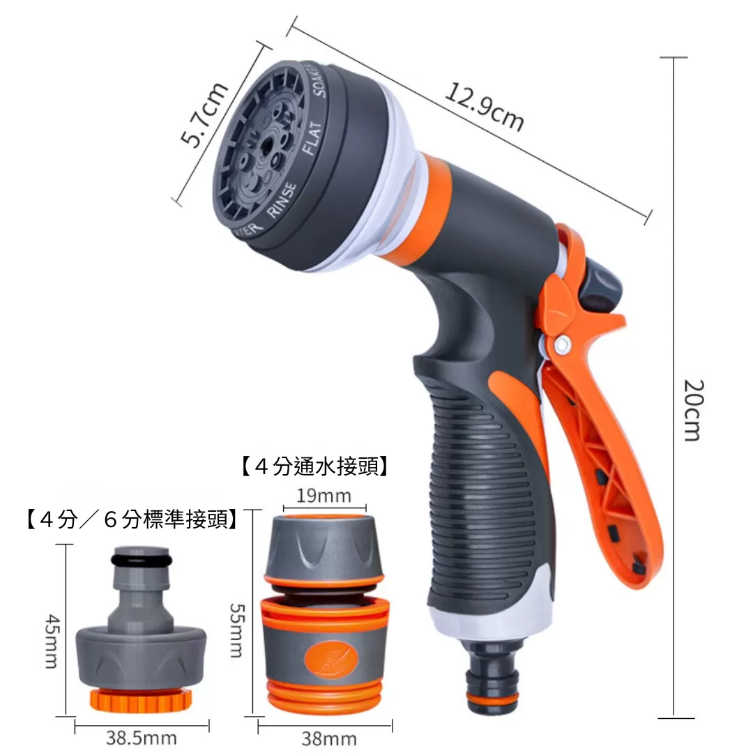 ✅ 1 支八段式高壓水槍(橘色包膠款)