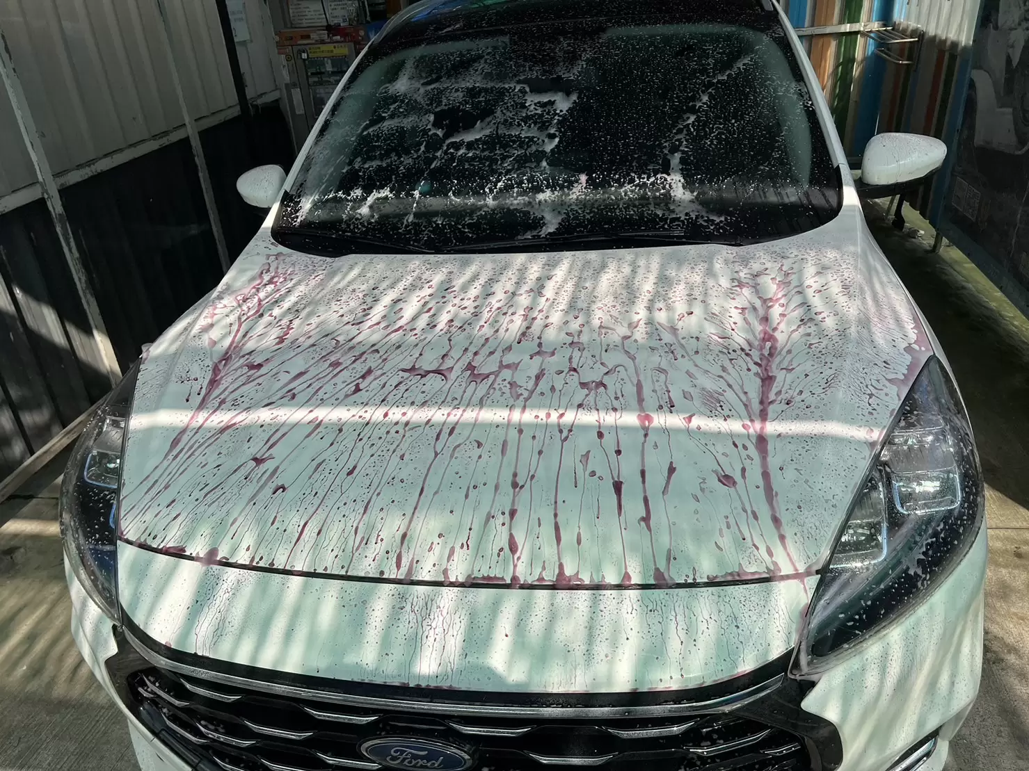 洗車前噴灑,等3分鐘藥劑反應之後,以高壓沖水沖淨並洗車。